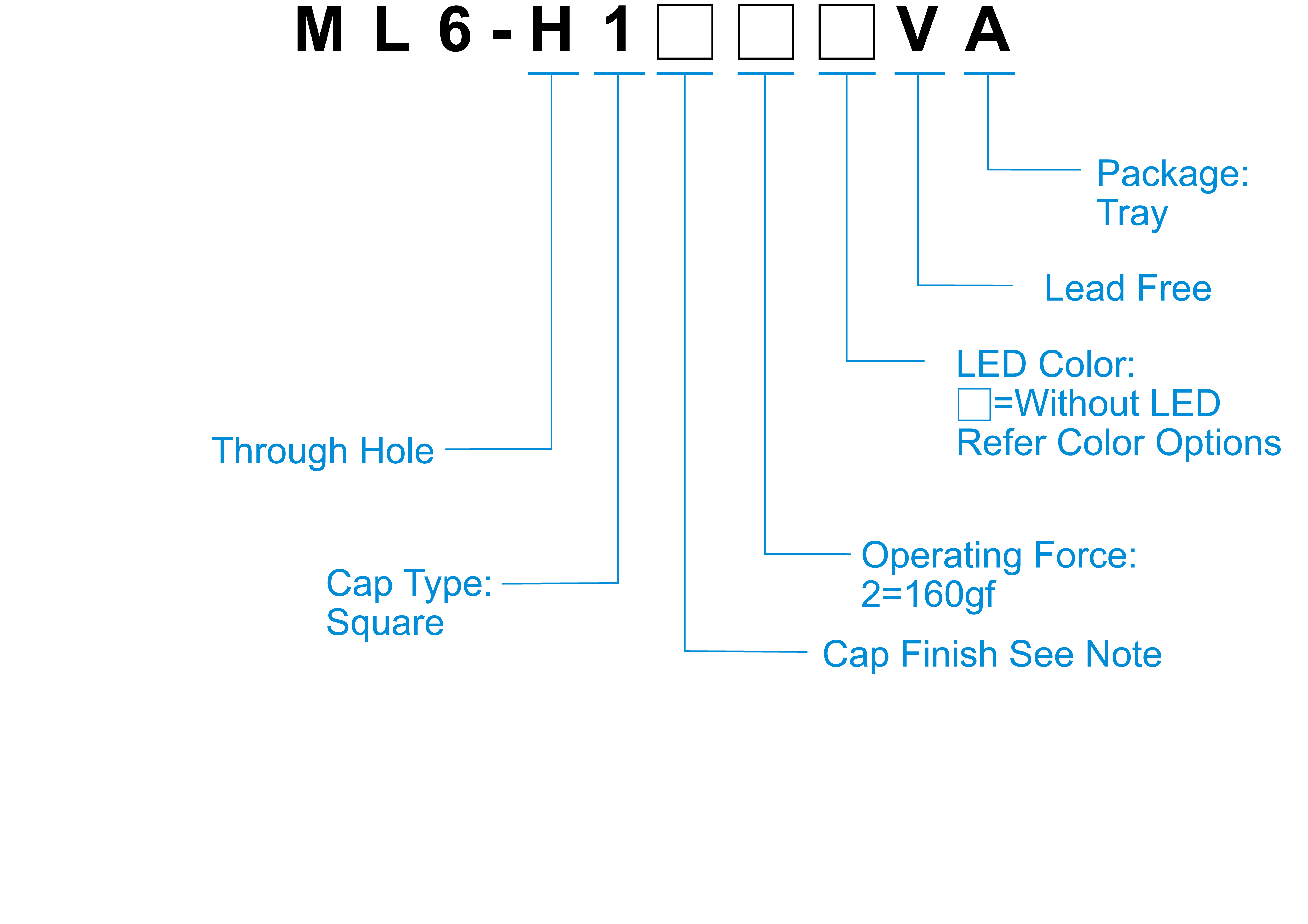 | ML6-H1□2BV | B(Blue) | - | - | 160 | 0.25 | 300000 | 3.5 | 10x10 | ● |