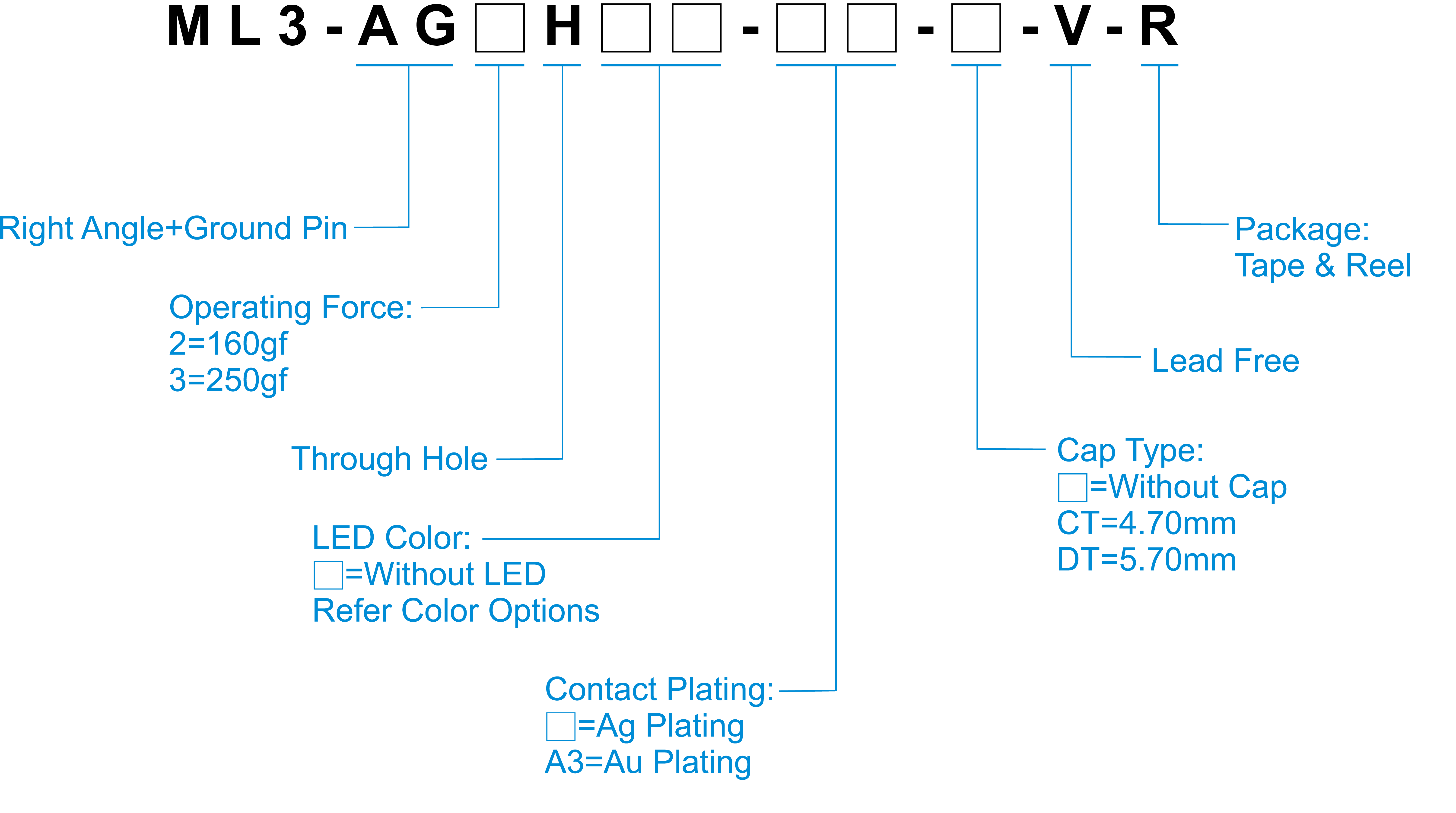 | ML3-AG2HPB□□-□□-CT-V | PB(Blue) | - | - | 160 | 0.2 | 100000 | 4.7 | 4 | - |