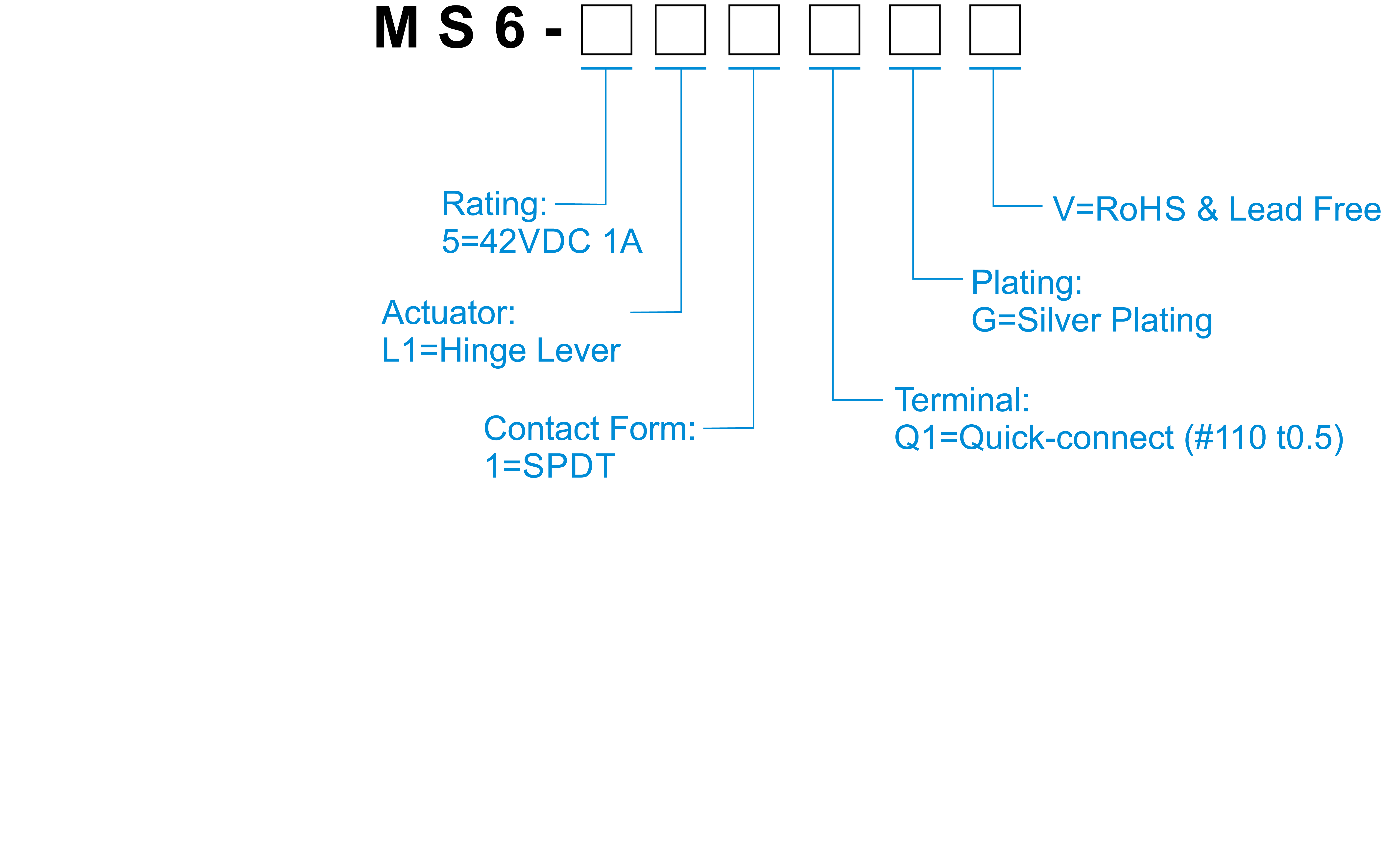 | MS6-5L11Q1GV | SPDT | Quick-connect (#110 t0.5) | 58.8 | 9 |