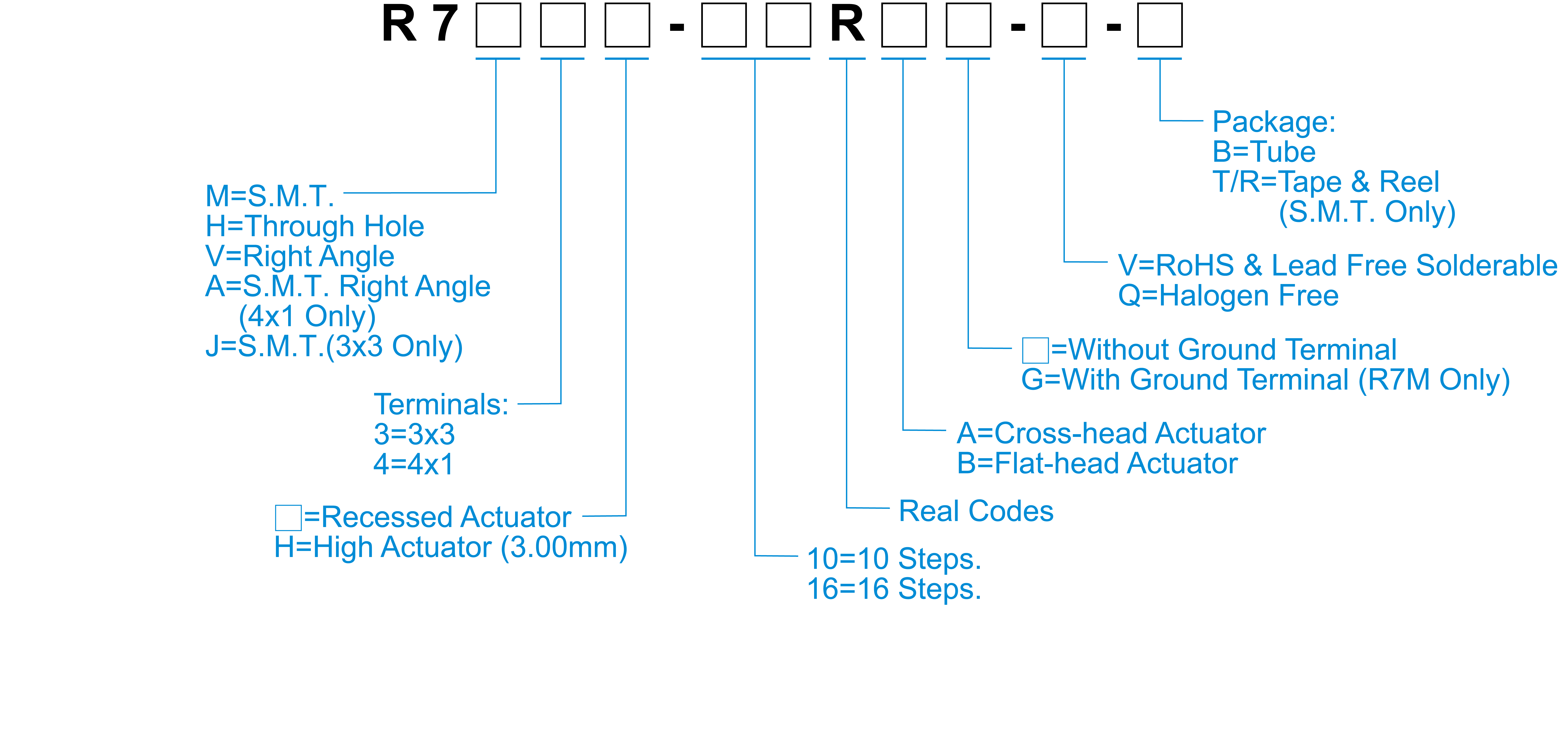 | R7M3□-10RB□-□ | SMT | 3x3 | 10 | Flat-Head | 200 |